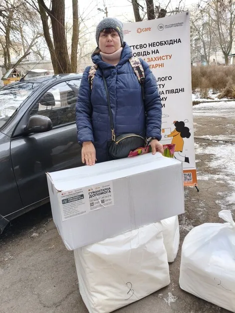 CARE distribuovala balíky pomoci domácnostiam, v ktorých žijú ženy, v Chersonskej oblasti a v hromade Pavlivska v Záporožskej oblasti (december 2025).